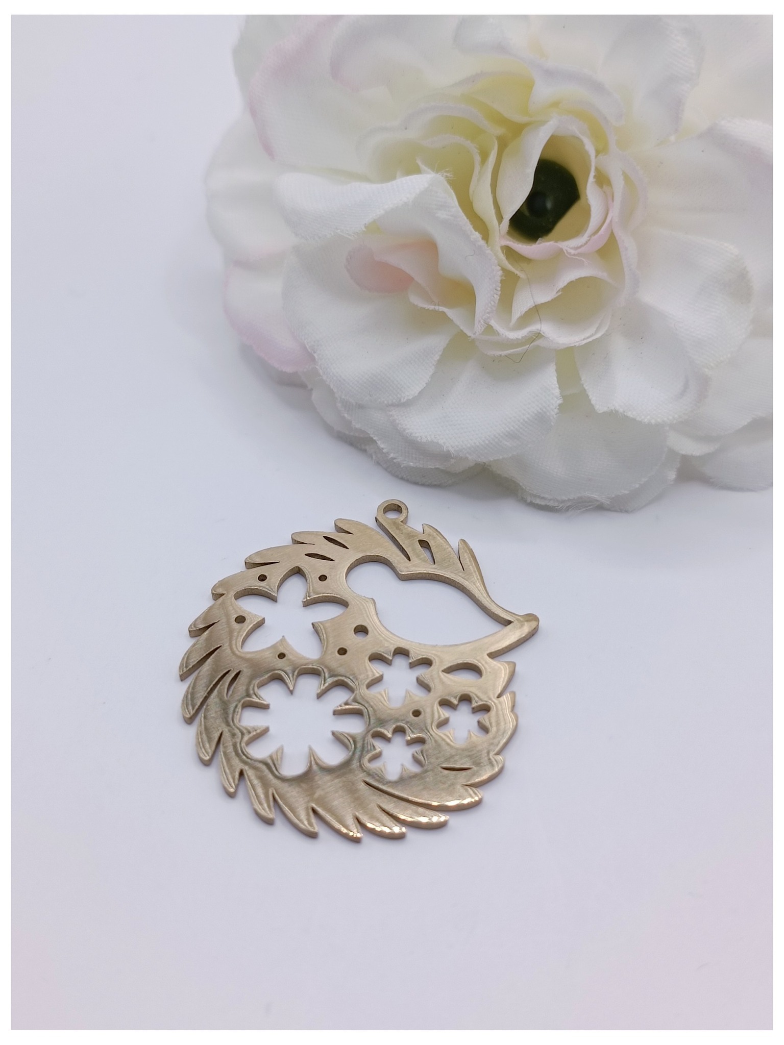 Breloque en acier inoxydable doré hérisson de 26 x 30 mm.