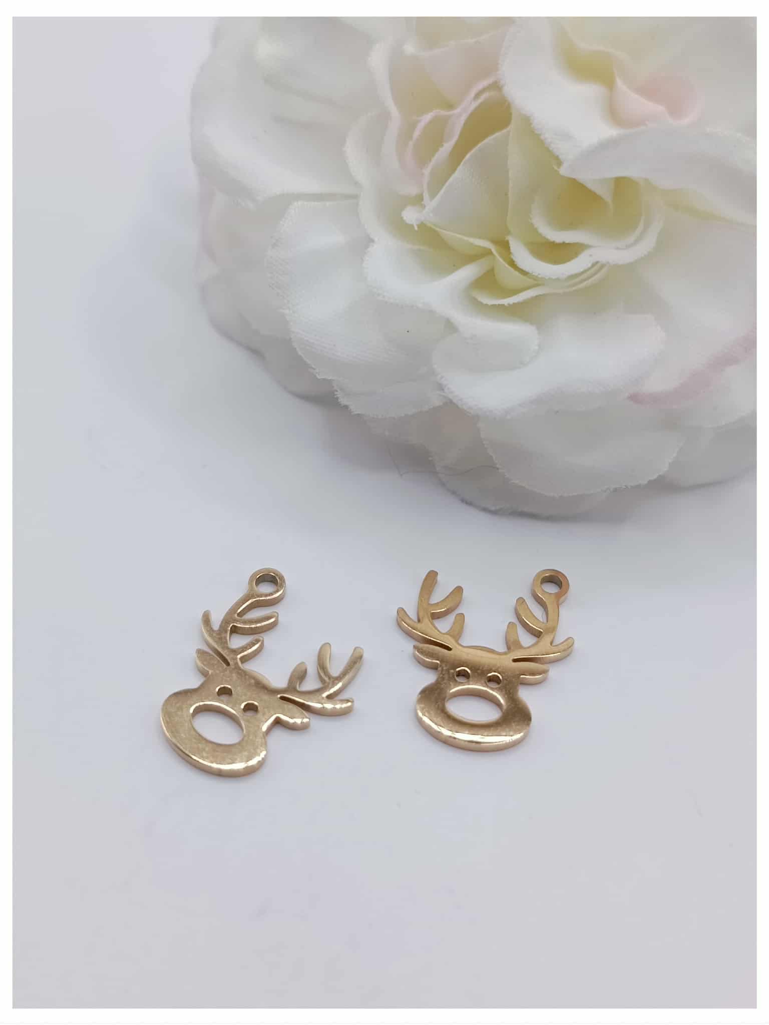 Breloque en acier inoxydable doré renne de 13 x 16 mm.