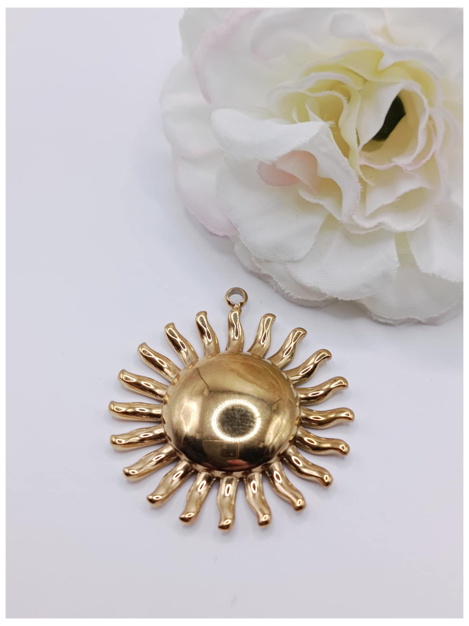 Breloque acier inoxydable dorée soleil – 20 x 30 mm