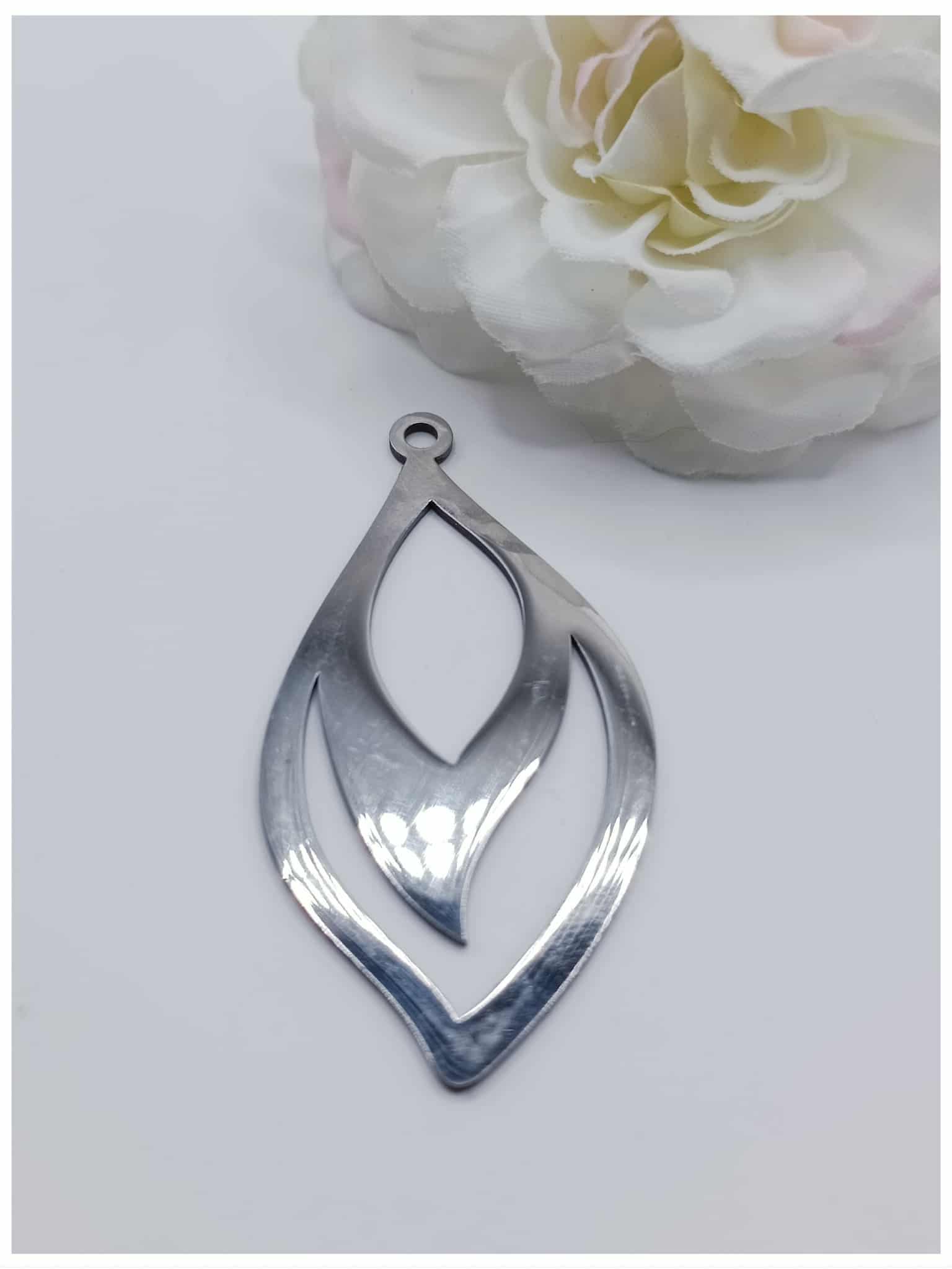 Breloque acier inoxydable feuille – 50 x 25 mm