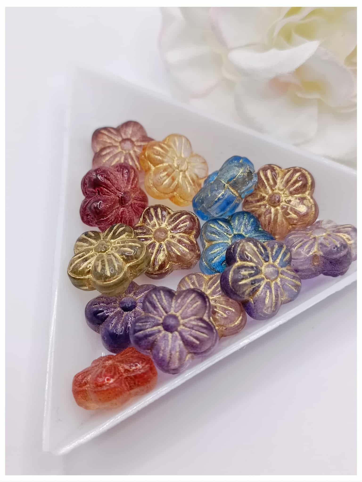 Lot de 10 perles de verre fleur liseré doré de 10 mm Mélange.